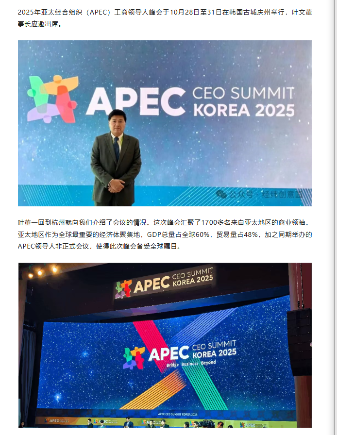庆州归来话峰会——记叶文董事长第15次参加APEC工商领导人峰会